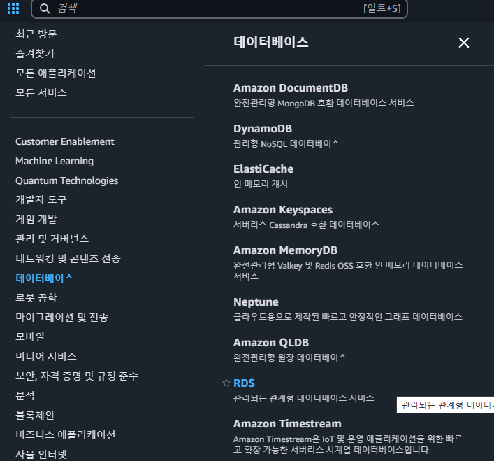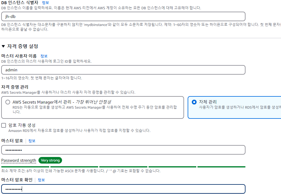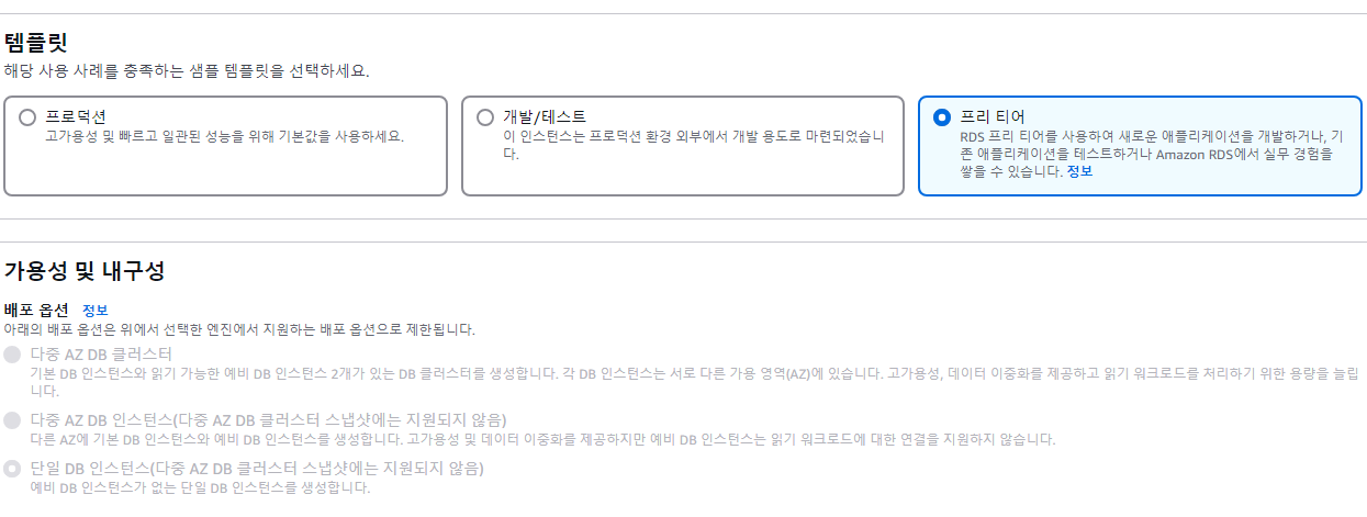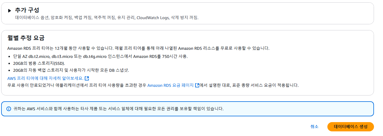 - 데이터베이스 > RDS > 데이터베이스 생성