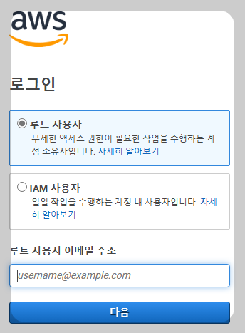 - 구글에 AWS (Amazon Web services) 검색하면 바로 뜨는 사이트에 들어간다.