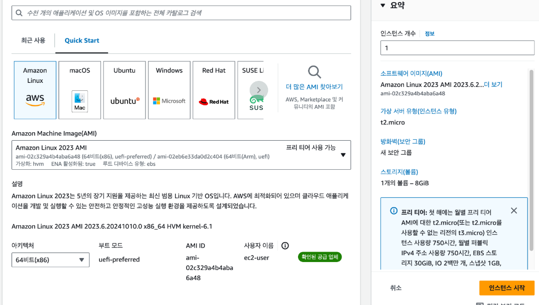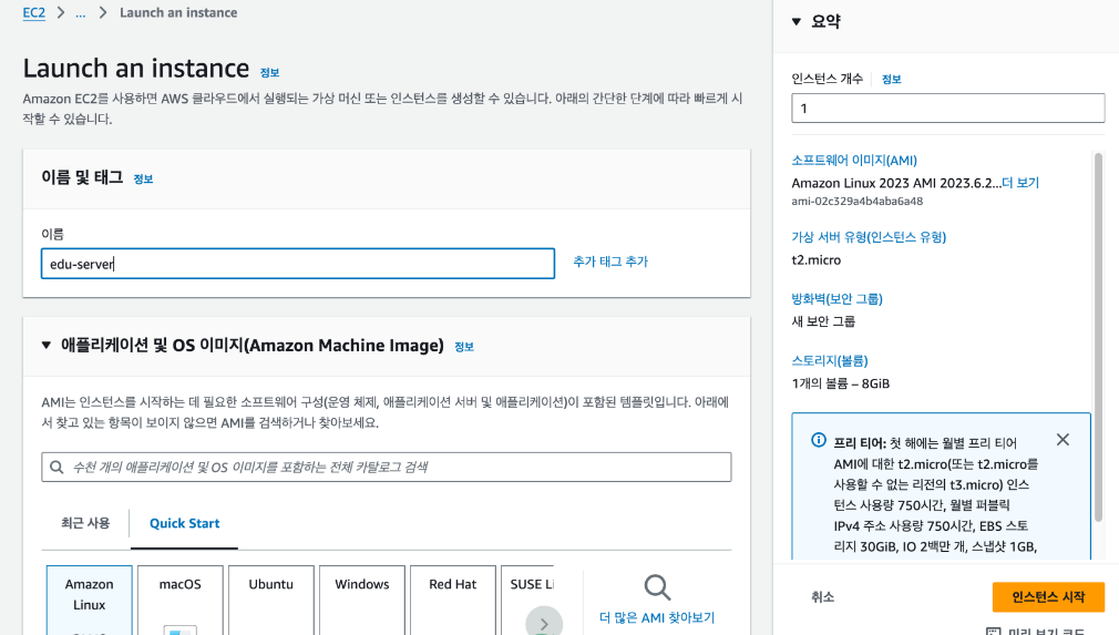 ** EC2와 RDS는 하나씩만 있어야된다. (무료로 사용하는거기 때문에 하나이상이면 요금 추가 될 수 있음.)