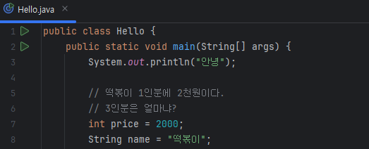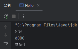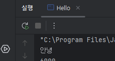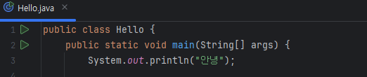 출력하는 함수는 System.out.println () 을 사용해주고 괄호 안에 "안녕" 을 입력해서 실행하면