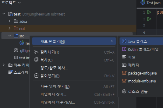 그 다음에 src 안에 새 자바클래스를 추가해주면 끝이다.