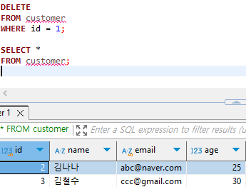 삭제가 잘 됐는지 select 해서 확인해보면 된다.