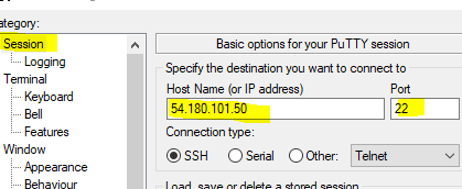다시 PuTTY로 돌아와 Host Name 에 붙여넣기.