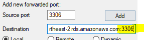 Destination 에 RDS 엔드포인트를 복사해서 붙여넣는다.