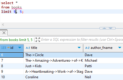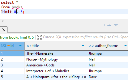 ● books 테이블의 데이터를 처음부터 5개만 가져오기