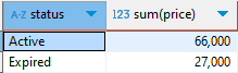 select status, sum(price) as sum_price