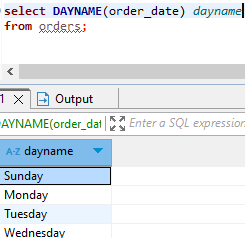 | SELECT DAYNAME(컬럼명) FROM 테이블명; |