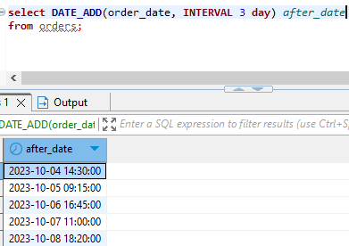 | 사용예제 : 3일 후의 날짜를 구하시오 -> date_add(날짜, interval 3 day) |