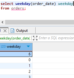 | SELECT WEEKDAY(컬럼명) FROM 테이블명; |
