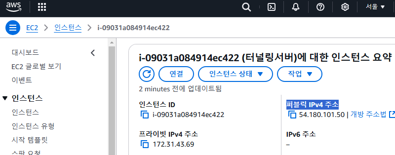 Host/IP : EC2 퍼블릭 IPv4 주소