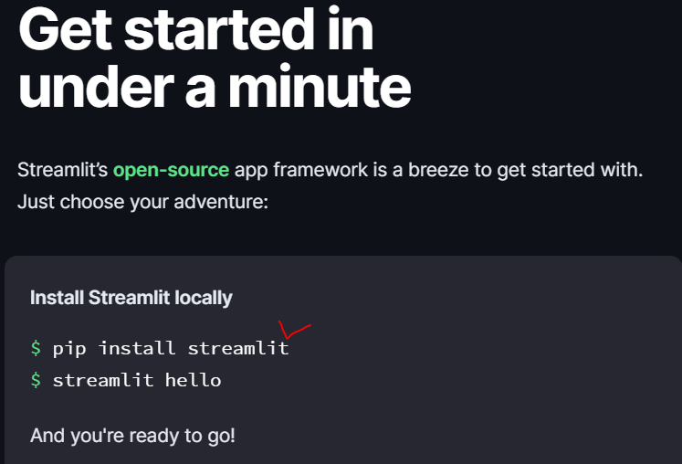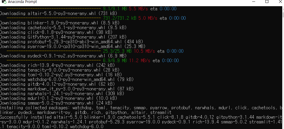 이렇게 하면 내 가상환경에 streamlit이 설치가 된거다.