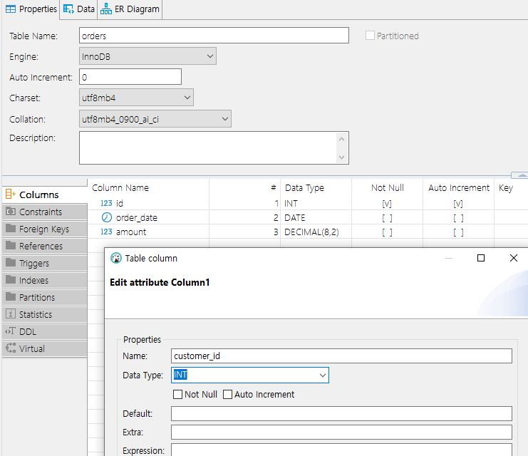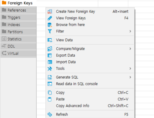 orders 테이블로 이동 > Foreign Keys 클릭> 우클릭 > Create New Foreign Key