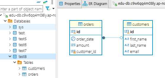 테이블을 생성한 데이터베이스를 더블클릭 눌러서 ER Diagram 을 누르면 두개가 있는 걸 확인할 수 있다.