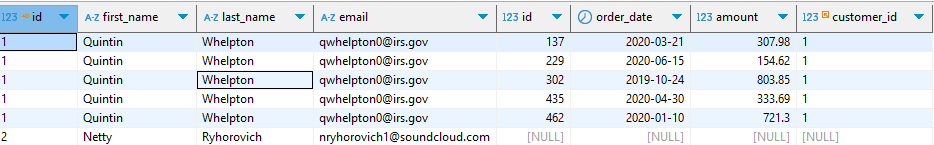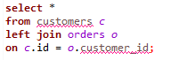 from orders o join customers c on o.customer_id = c.id; |