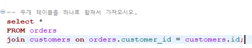 아래는 orders 테이블과 customers를 조인하는 예제이다.