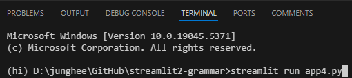 터미널 열어서 스트림릿 실행!