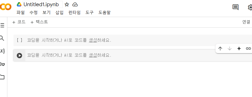 - 새로운 코드 셀에 파이썬 코드를 작성합니다.