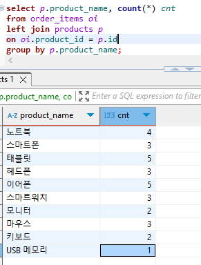 - order_items 테이블에서 orders, products 연결