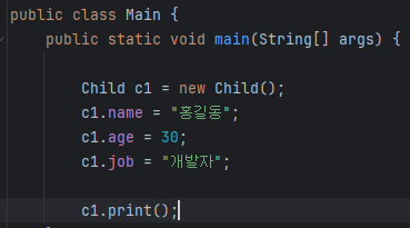 // 자식 클래스의 객체 생성