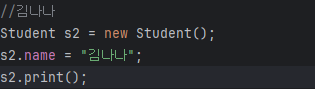 김나나를 생성한 다음에 똑같이 출력을 해주면
