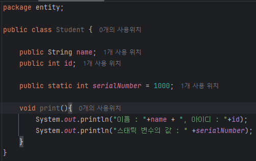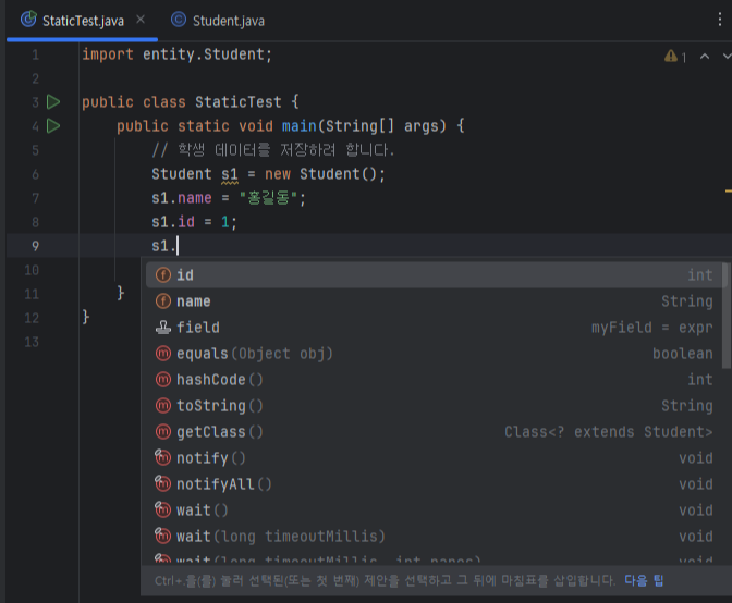 메인클래스로 돌아와서 Student. 하면 serialNumber가 보인다.