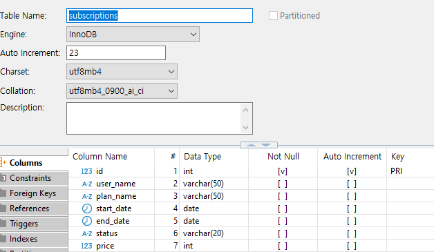 아래 화면을 보고 SQL를 짜보자.- SQL를 짜기 전에 데이터베이스와 테이블을 만들어주자. Database : movie_db Tables는 위 화면을 보고 어떤 테이블이 필요한지 하나씩 봐보자. 먼저 리뷰를 작성하려면 사용자 정보가 필요하니까user 테이블을 만들어준다. -- 서비스 회원가입 tables > user> columms id : int 아이디가 중복되지 않게하고 자동으로 추가한다. email : varchar(100) 이메일이 중복되지 않게 한다. password : varchar(100) nickname : varchar(100) gender : int 성별은 0과 1로 나타낼거기 때문에 int(정수) 로 한다. -- 회원가입하기INSERT into user(e..